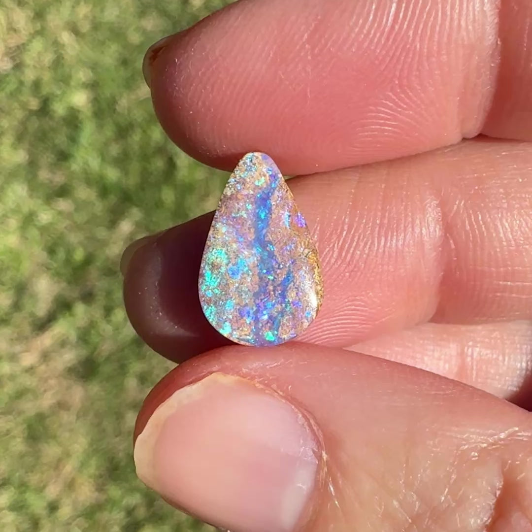 A beautiful 2.01 Ct wood replacement opal with a pin fire pattern in purple and green colours.