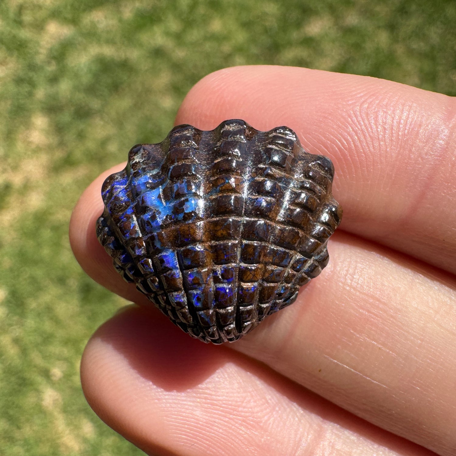 A lovely matrix fan shell boulder opal carving. Please note this is very limited stock, so don't miss out.