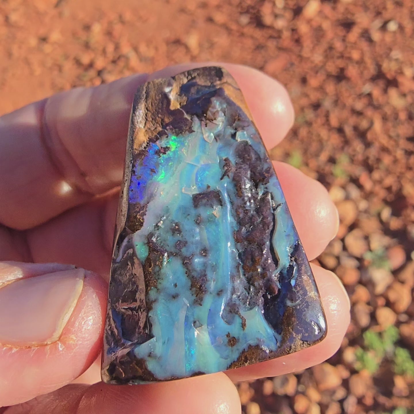 A pretty small boulder opal specimen from our Yaraka opal mine.