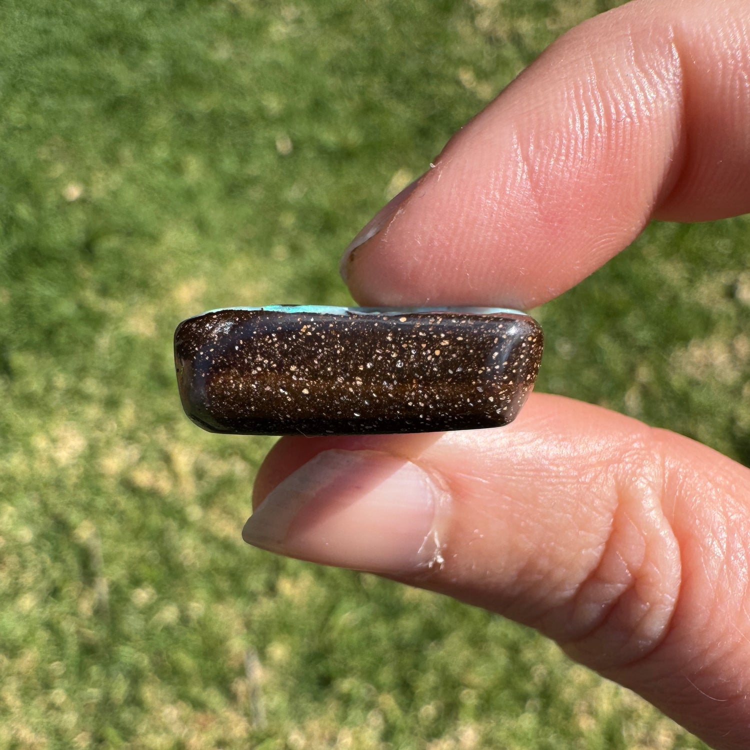 A beautiful large boulder opal that has has a ~1.6 mm drilled hole through its front.