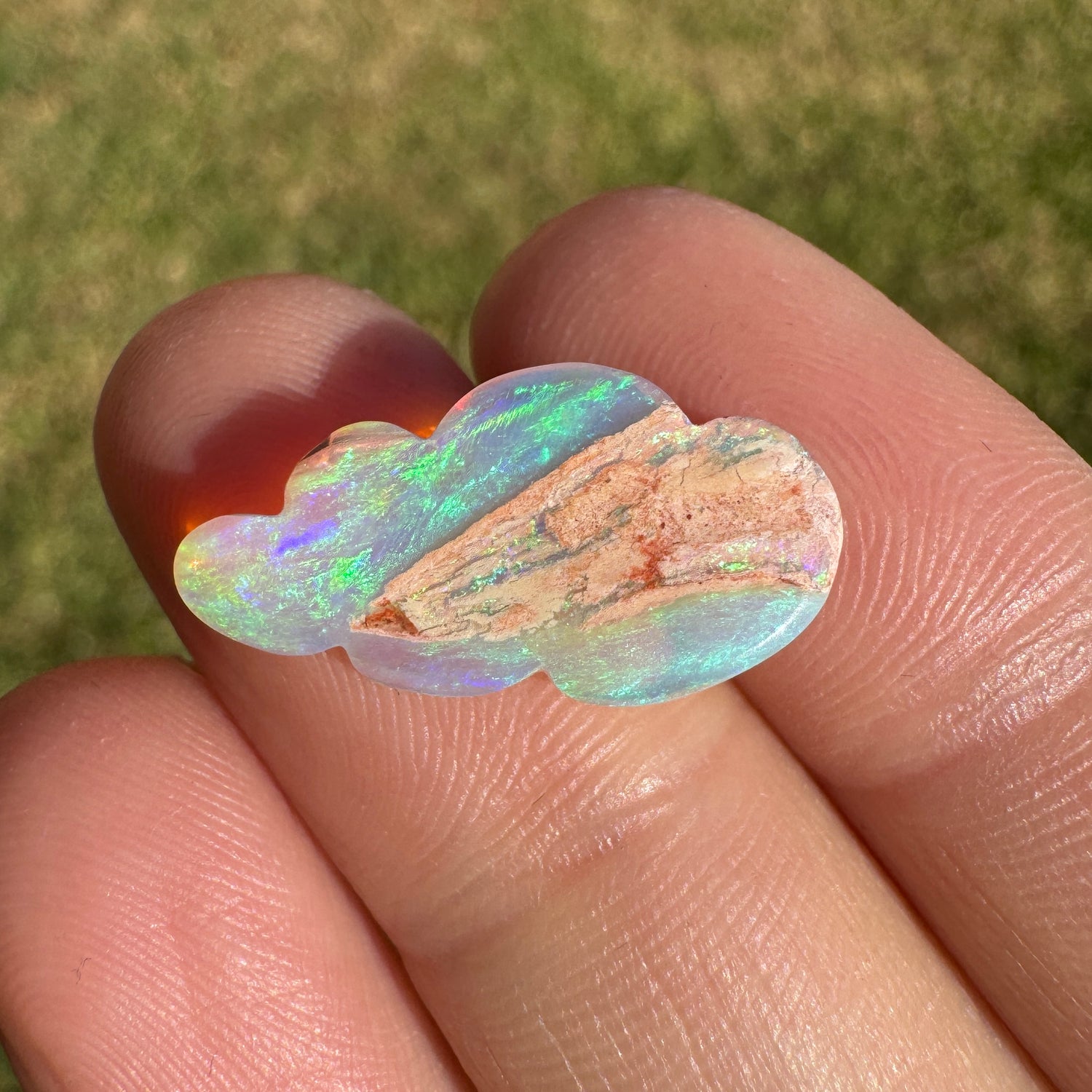 A beautiful cloud opal, carved from our crystal / wood replacement opal from our Russells opal mine. This is very limited stock, so please don't miss out. Once it is gone, its gone!