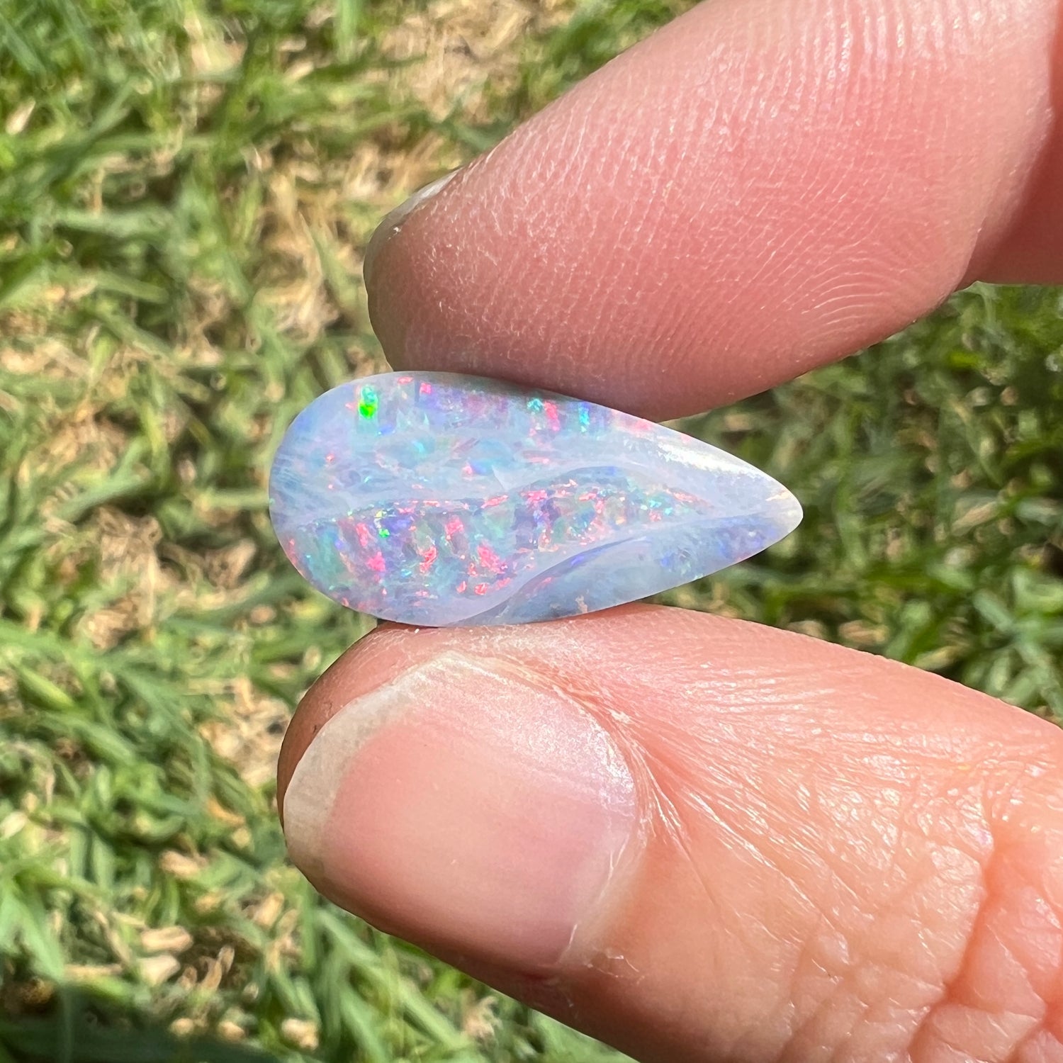 A lovely opal with pretty of pink and a lilac-hued lighter body tone.