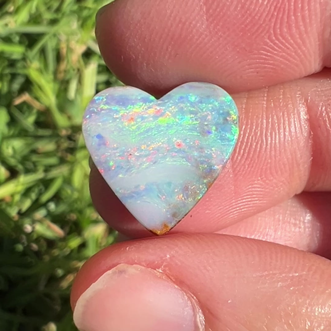 A beautiful rainbow pastel boulder opal heart.